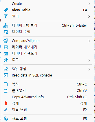 저장하고자 하는 테이블명에서 마우스 우클릭 > 데이터 내보내기